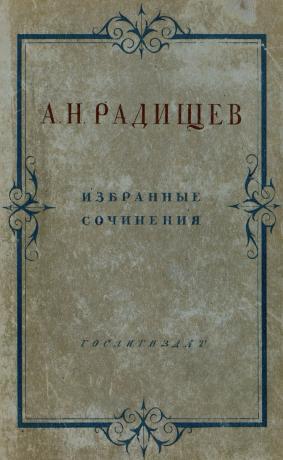 >> Радищев, Александр Николаевич. Избранные сочинения : сборник / А. Н. Радищев ; авт. предисл. Г. П. Макогоненко. - М. ; Л. : Гос. изд- во худож. лит- ры, 1949. - 855 с. : портр. - Текст : непосредственный.