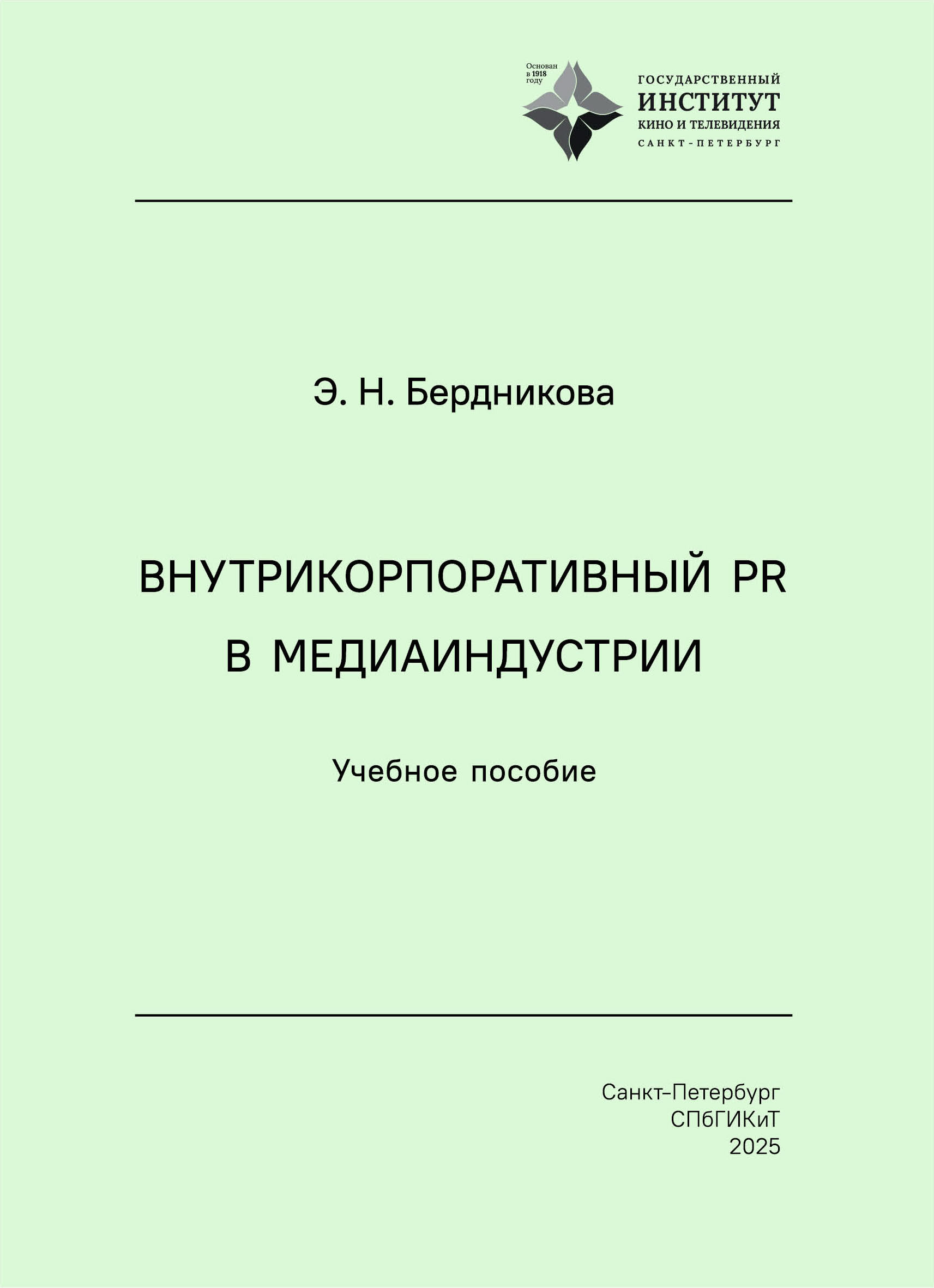 Бердникова Э. Н. Внутрикорпоративный PR в медиаиндустрии [Текст] : учебное пособие / Э. Н. Бердникова, 2025. - 76 с. (Введено оглавление)