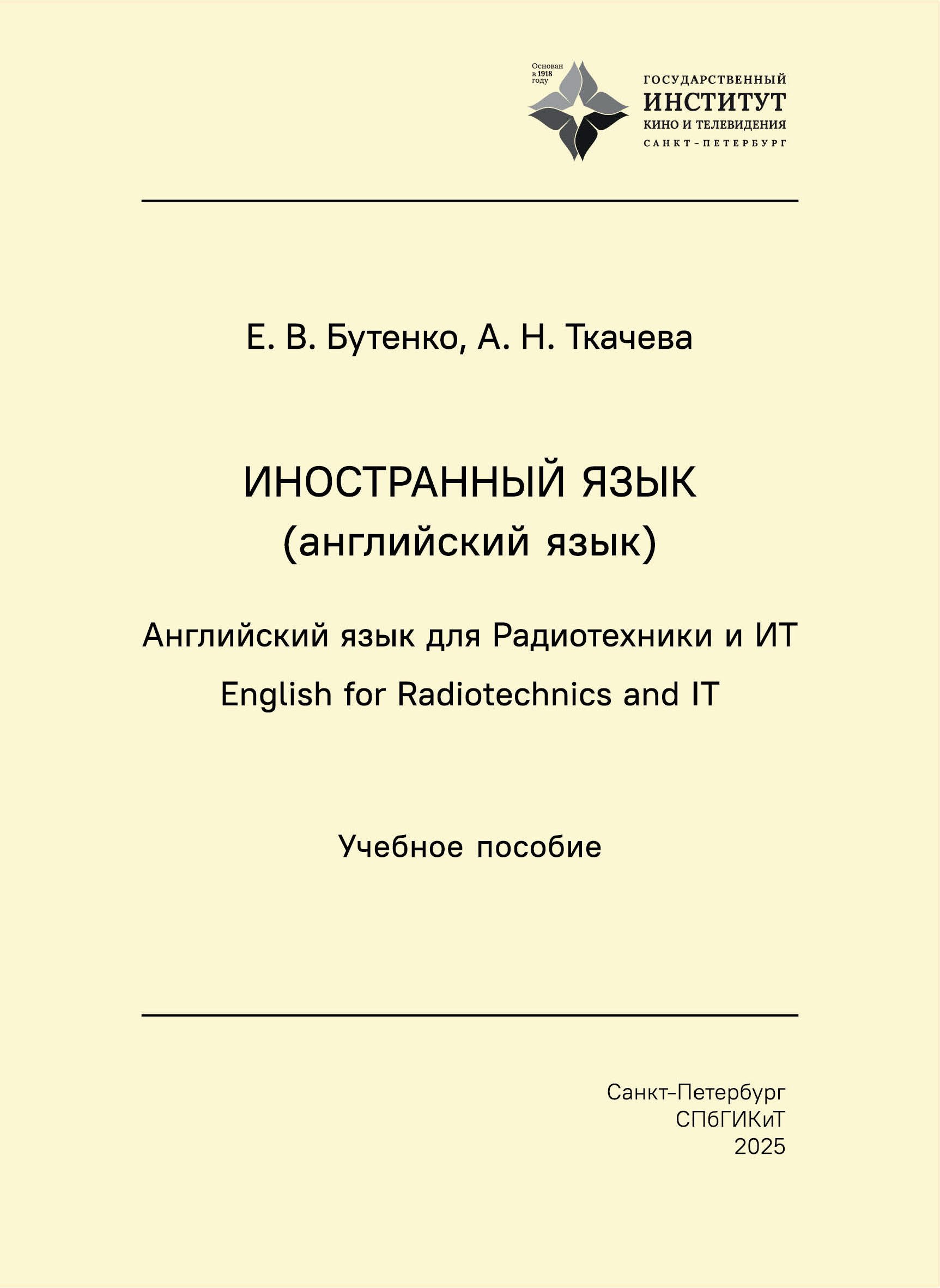 Бутенко Е. В. Иностранный язык (английский язык). Английский язык для Радиотехники и ИТ = English for Radiotechnics and IT [Текст] : учебное пособие / Е. В. Бутенко, А. Н. Ткачева, 2025. - 109 с.