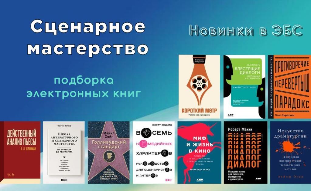 Представляем вниманию наших читателей подборку новых изданий по сценарному мастерству, вошедших в подписные электронно-библиотечные системы нашего вуза.